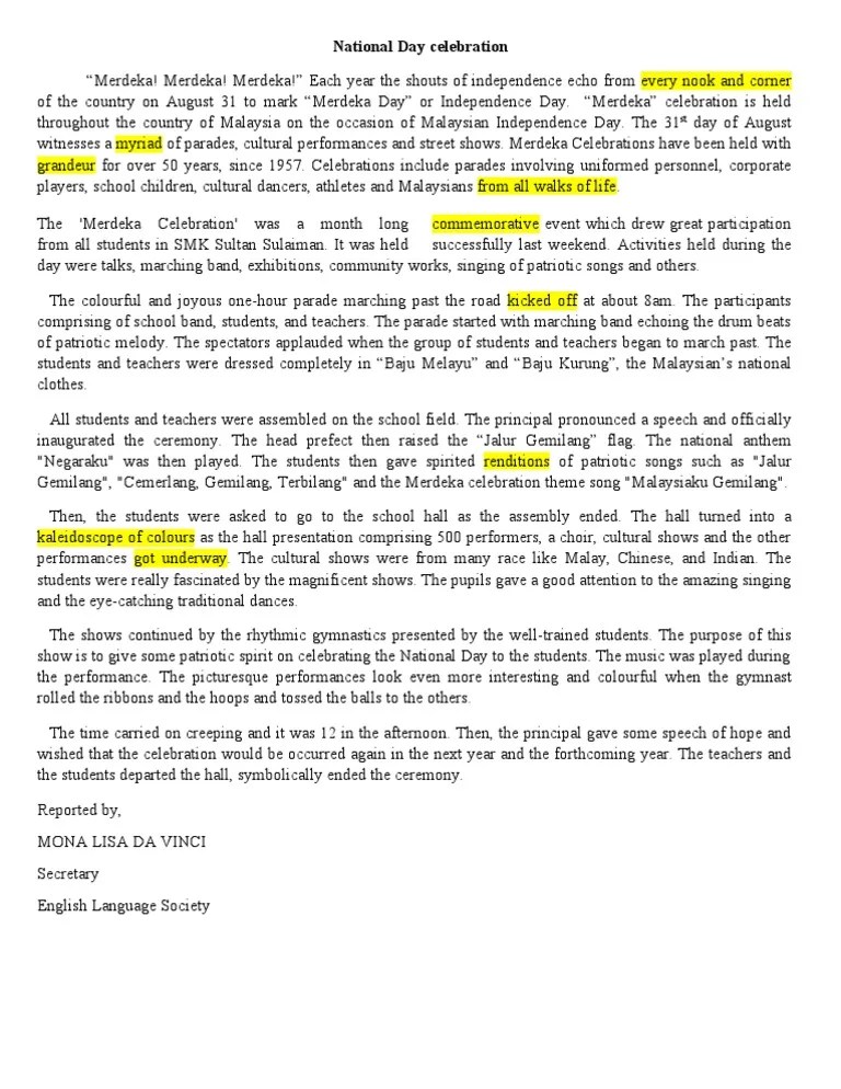 Supporters of hari merdeka argue that the federation as defined in article 160 of the constitution of malaysia is the . 48+ english national day celebration essay upsr png.